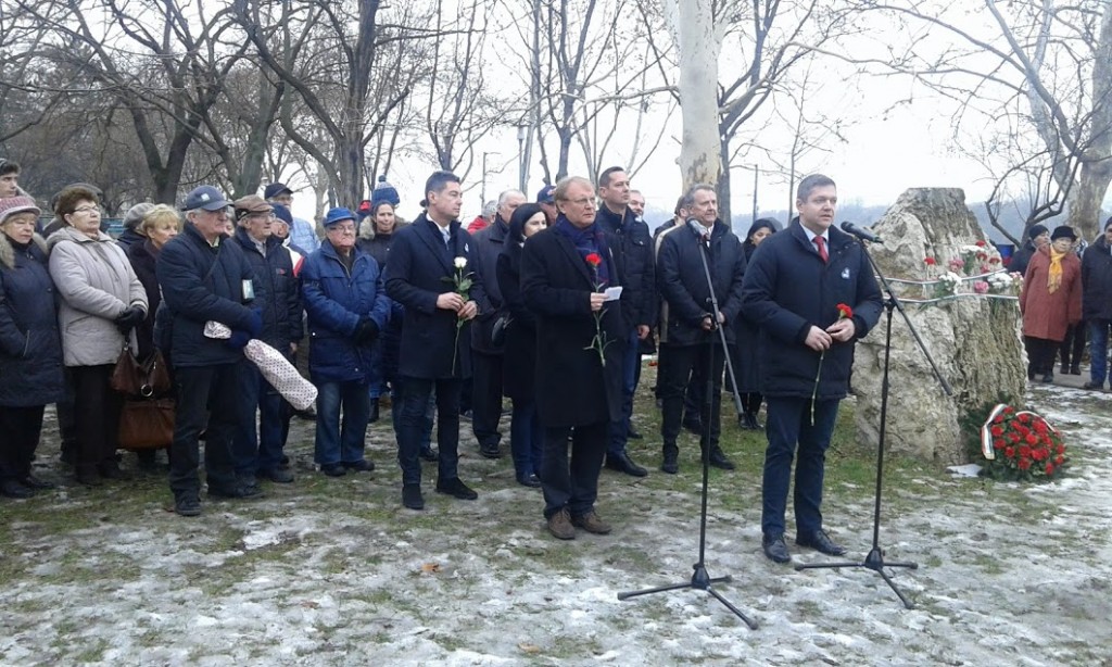 A köztársaságra emlékeztünkFebruár 1-én pénteken, a Carl Lutz rakparton lévő „magyar köztársaság kövénél”, mintegy 250 demokratikus elkötelezettségű fővárosi lakos és a baloldali pártok reprezentánsainak jelenlétében Tóth Bertalan az MSZP elnöke, és dr. Hiller István, az Országgyűlés alelnöke emlékeztek azokra az esztendőkre, amikor Magyarország államformája köztársaság volt.